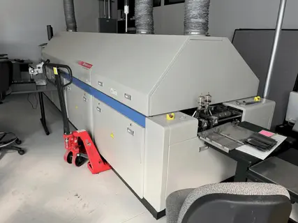 All specifications are assumed to be correct but must be confirmed by the purchasing entity.,– Full convection reflow oven – 8 independently controlled upper heating zones – 8 independently controlled lower heating zones – PID temperature controls in each zone with ±1?C accuracy – Motorized and hand-crank adjustable pin conveyor with max width 450 mm (17.7″) – 570 mm (22.4″) wide mesh belt conveyor – Windows 10-based computer controller – CR series oven management software – KIC Auto Focus profile prediction software – Timed automatic startup and shutdown modes – UPS battery backup – Dimensions: 5300mm L x 2000mm W x 2180mm H (209″ L x 79″ W x 86″ H) – Gross Weight: 2330 kgs (5,137 lbs.) – Cubic Meter: 23.11 CBM – 220V / 3 ph / 160 A All specifications are assumed to be correct but must be confirmed by the purchasing entity. |