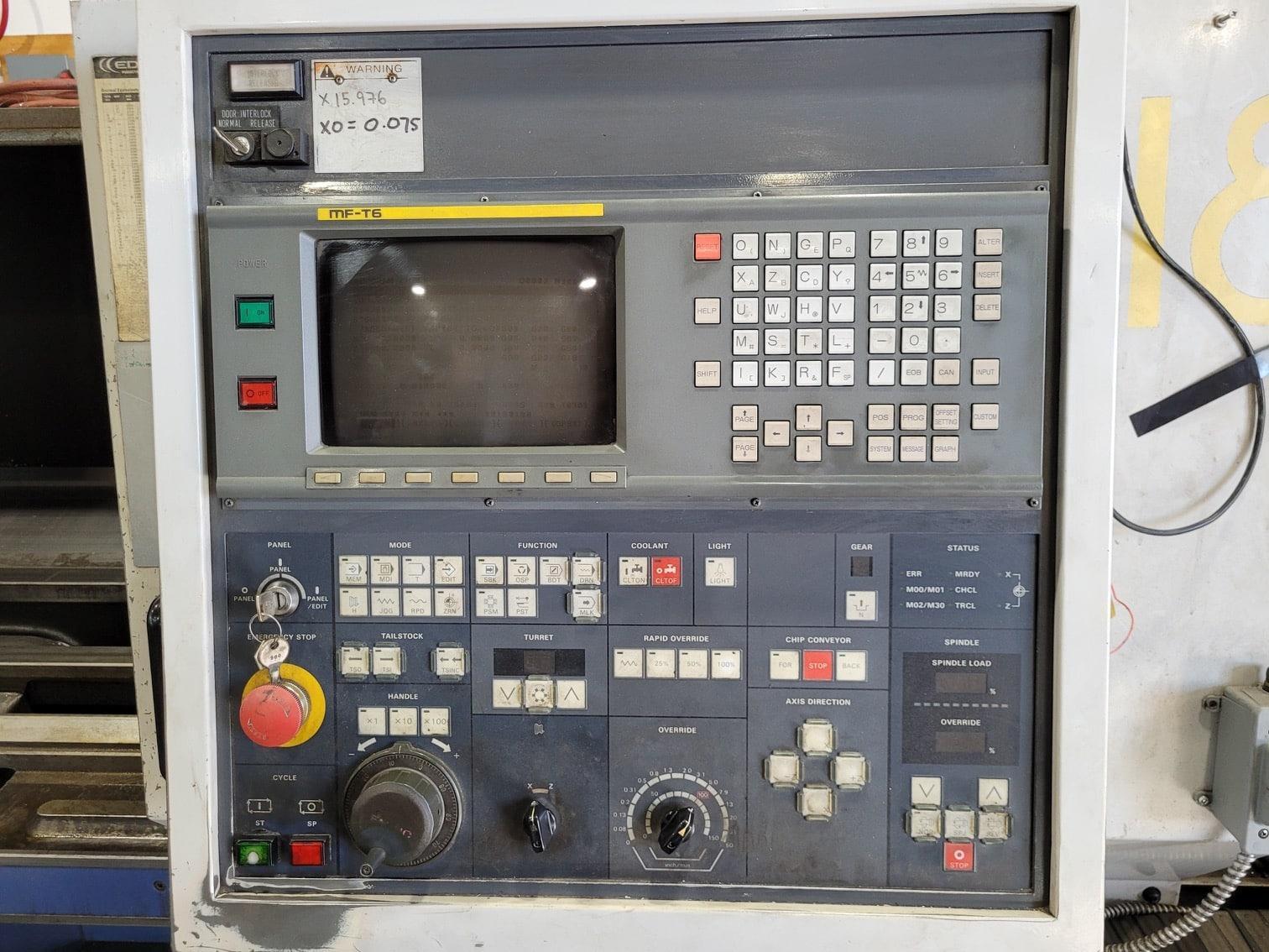All specifications are assumed to be correct but must be confirmed by the purchasing entity.,2500 Rpm Main Spindle, High and Low Gear Available All specifications are assumed to be correct but must be confirmed by the purchasing entity.,Included: -2 Steady Rests -Numerous Soft Jaws -1 Set of Hard Jaws -7 Centers -Auxiliary High Pressure Coolant Pump -Fanuc MF-T6 Control -Chip Conveyor -Multiple I.D. and O.D. Tool Holders -2 Face Groove Holders All specifications are assumed to be correct but must be confirmed by the purchasing entity.,This machine is in good working order and is currently powered up and available for viewing. As mentioned, it has never been crashed and is still a very capable heavy turning machine All specifications are assumed to be correct but must be confirmed by the purchasing entity. |