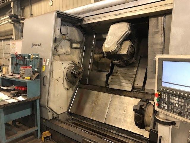 All specifications are assumed to be correct but must be confirmed by the purchasing entity.,Equipped With: Okuma OSP-P200L Control Full Contouring B-Axis Universal Head 15″ Chuck Available Manuals Magnetic Chip Conveyor Multiple sets of misc Jaws Misc sets of different size collets Tool Holders with Tool rack All specifications are assumed to be correct but must be confirmed by the purchasing entity. |