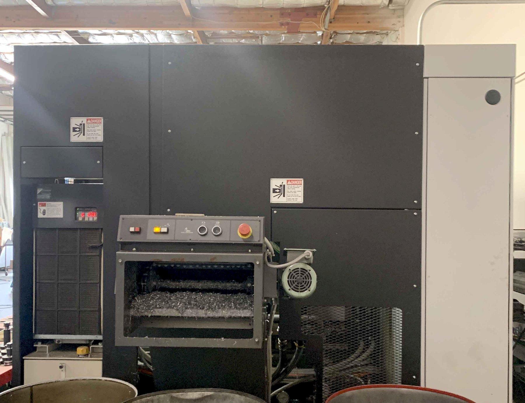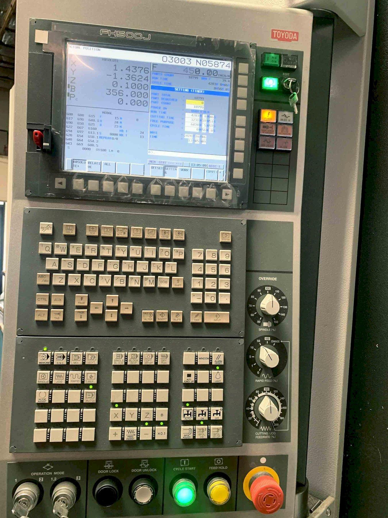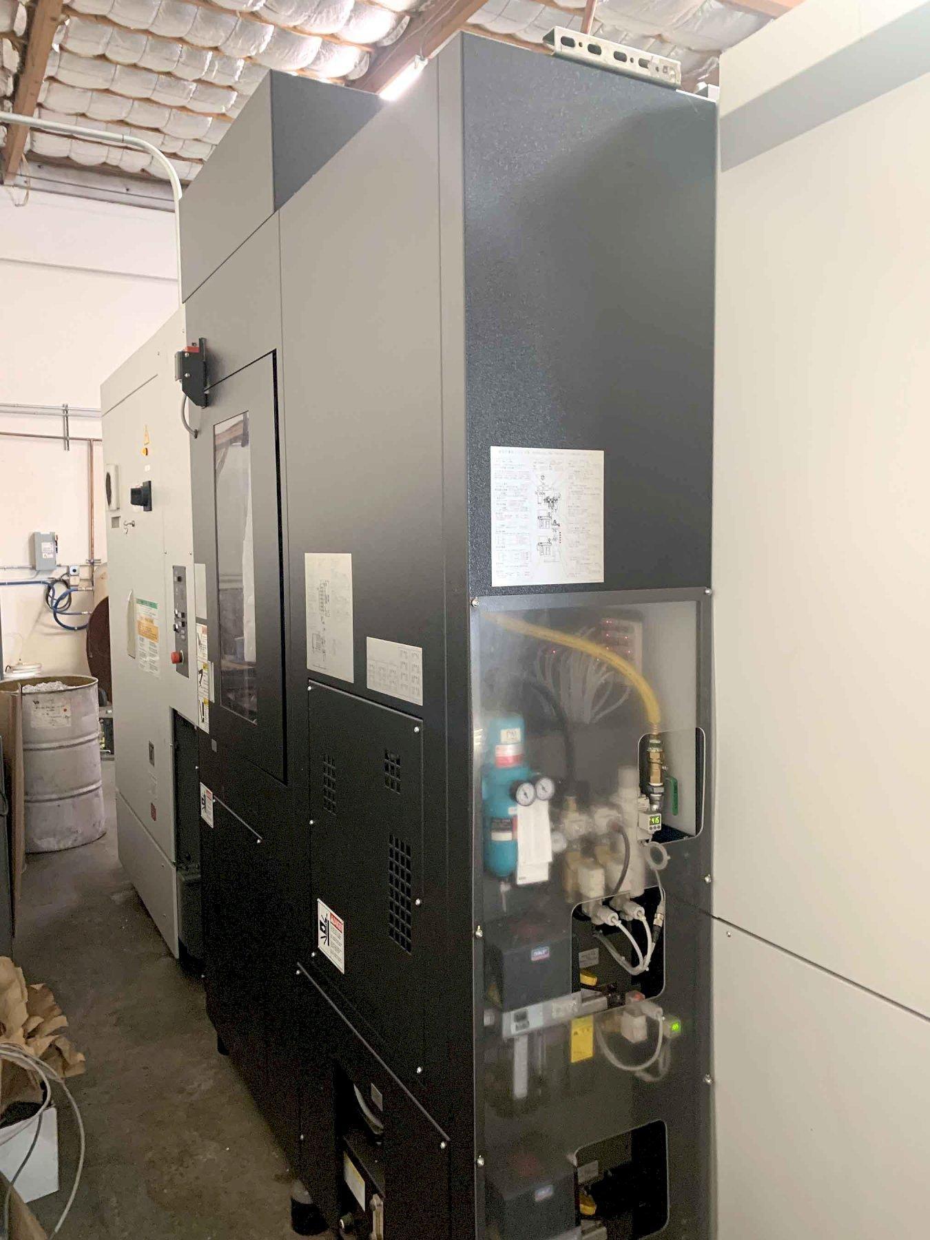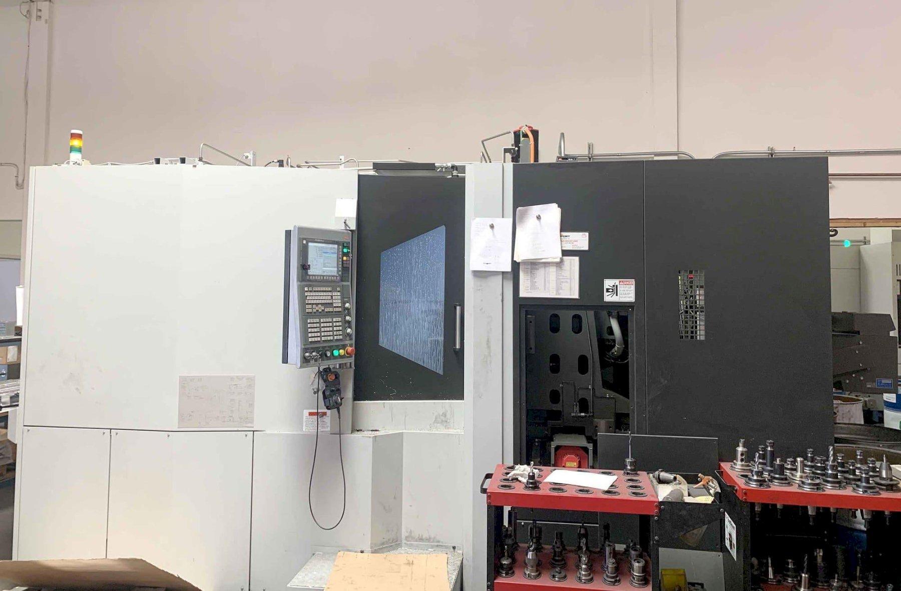 All specifications are assumed to be correct but must be confirmed by the purchasing entity.,X-Axis Travel: 28.74″ Y-Axis Travel: 28.74″ Z-Axis Travel: 33.46″ Spindle Nose to Table Center: 3.9″ – 37.4″ Spindle Center to Pallet Top: 2.0″ – 30.7″ Workpiece Swing Diameter: 31.50″ Workpiece Height: 39.37″ All specifications are assumed to be correct but must be confirmed by the purchasing entity.,Auto Tool Changer: 60 Tools Spindle Speed: 15,000 RPM Taper: Cat 40 Spindle Motor: 30 HP Rapid Feed (X/Y/Z): 2,362 IPM All specifications are assumed to be correct but must be confirmed by the purchasing entity.,Electrics: 200 V; 3 Ph; 60 Hz Floor Space (l x w x h): 186″ x 104″ x 113″ Machine Weight: 29,700 lbs All specifications are assumed to be correct but must be confirmed by the purchasing entity.,EQUIPPED WITH: Fanuc 31iMB CNC Control Data Server Option- 48 Offsets, CF Card Memory Upgrade- 48 Offsets, 8MB 60 Position Automatic Tool Changer 2 Position Automatic Pallet Changer Roller Bearing Way Design Direct Drive B-Axis- 360,000 Positions Through Spindle Coolant Overhead Coolant Shower Splash Gun Chip Conveyor Approx Run Time: 9,140 Hours All specifications are assumed to be correct but must be confirmed by the purchasing entity.,Machine is under power and in use. Video available. All specifications are assumed to be correct but must be confirmed by the purchasing entity. |