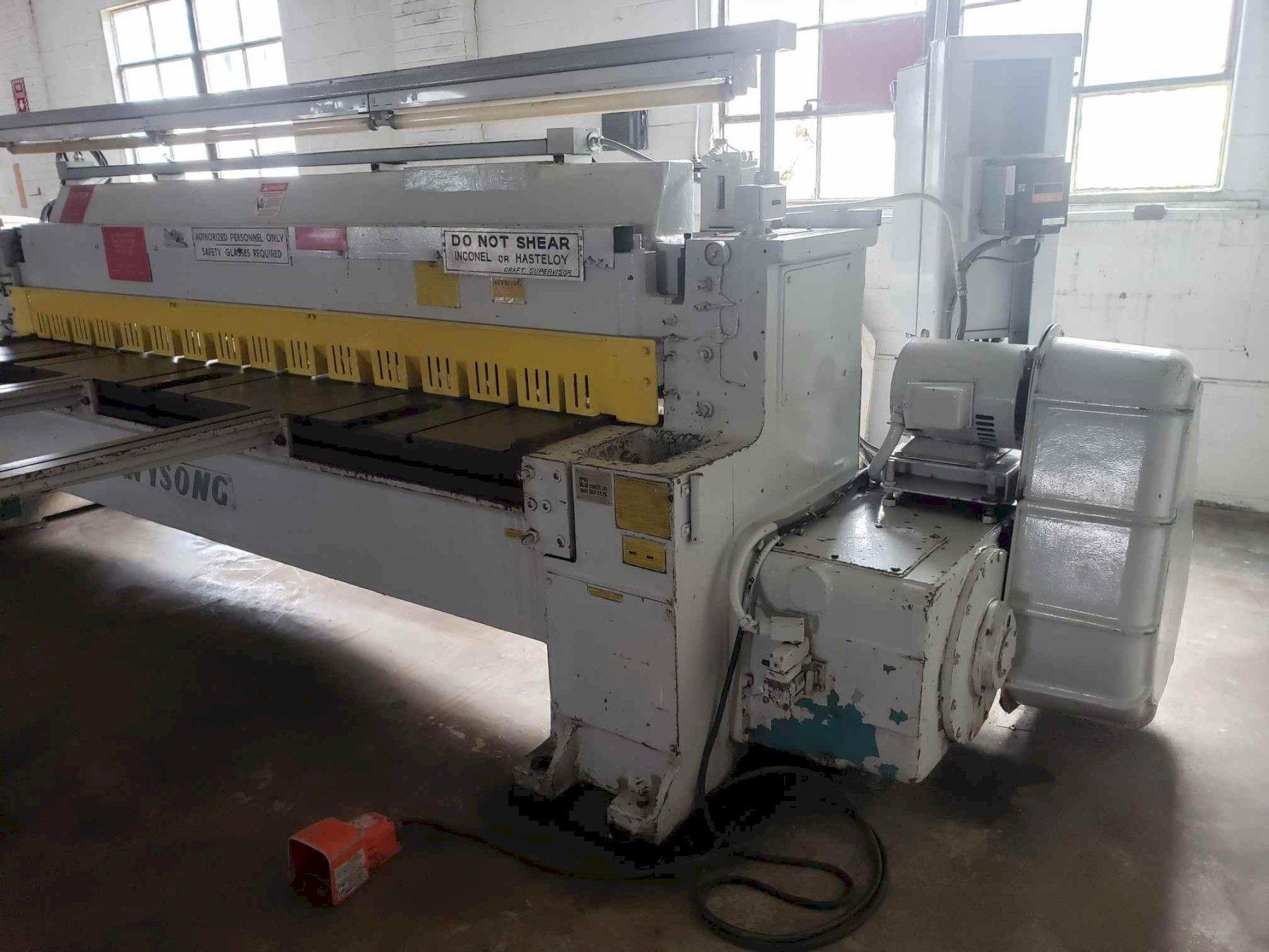 All specifications are assumed to be correct but must be confirmed by the purchasing entity.,Equipped With: – 36” Front Operated Power Back Gauge – Air Powered Foot Switch – Hand Slots In Table – 7’ Squaring Arm – Dual Front Supports – Flush Floor Design. All specifications are assumed to be correct but must be confirmed by the purchasing entity. |
