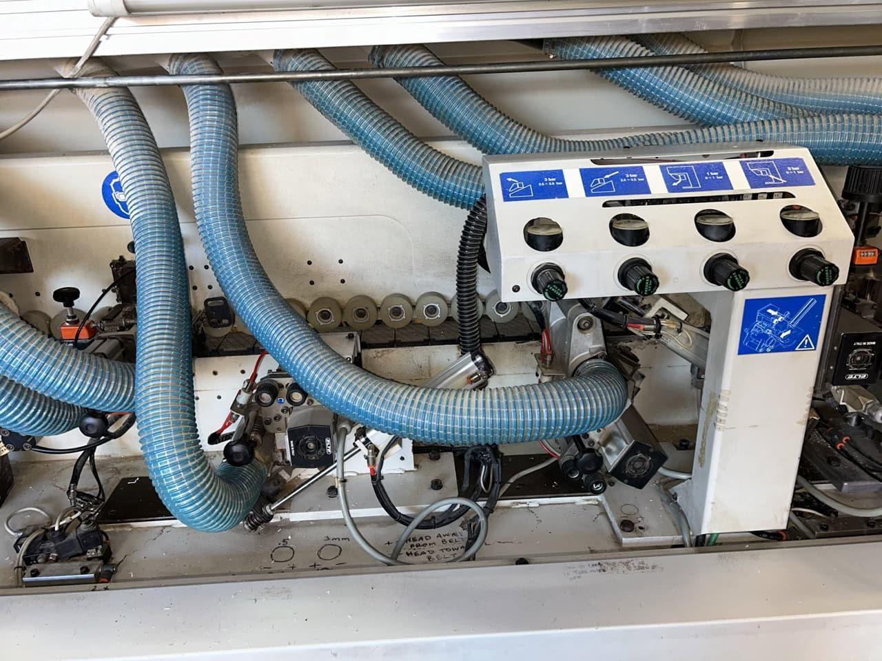 All specifications are assumed to be correct but must be confirmed by the purchasing entity.,Panel Height: 10-50 mm Edge-banding Material Height: 13-55 mm Min. Thickness of Edge-Banding Strip in Rolls: 0.4-3 mm Max. Edge Thickness w/Trimming Unit: 8 mm Max. Edge Thickness w/o Trimming: 3 mm Max. Section of Solid Wood: 8 x 55 mm Panel Protrusion from Track: 25 mm Min. Panel Length: 150 mm Min. Panel Width (150mm Length): 85 mm Min. Panel Width (250mm Length): 55 mm Chain Feed Speed: 12 m/min Dimensions: 18′ L x 4′ W x 5′ H Weight: 4,000 lbs Electrical: 230 V 3 Phase All specifications are assumed to be correct but must be confirmed by the purchasing entity. |