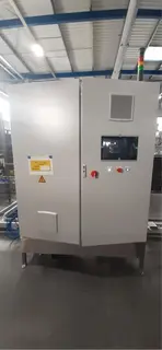 All specifications are assumed to be correct but must be confirmed by the purchasing entity.,Intended purpose was originally to package bulk boxes of plastic pumps. All specifications are assumed to be correct but must be confirmed by the purchasing entity.,It Operates At A Speed Of 300 Parts Per Minute And Has A Capacity Of 440 Parts Per Box. All specifications are assumed to be correct but must be confirmed by the purchasing entity.,VCEFLEX41-0014 CEFLEX-41 Combination Case Erector and Bag Inserter All specifications are assumed to be correct but must be confirmed by the purchasing entity.,VCEFLEX41-2601 Automatic film roll exchange All specifications are assumed to be correct but must be confirmed by the purchasing entity.,VCONVEYOR-0003 Driven Roll Conveyor All specifications are assumed to be correct but must be confirmed by the purchasing entity.,VDF31-0002 DF-31 Bag Decuffer Folder (American) All specifications are assumed to be correct but must be confirmed by the purchasing entity.,VCC31-0001 CC-31 Case Closer – Tape All specifications are assumed to be correct but must be confirmed by the purchasing entity.,VCEPAL-0006 CEPAL-12 Robotic Palletizer All specifications are assumed to be correct but must be confirmed by the purchasing entity.,CEFLEX-41 Combination Case Erector and Bag Inserter MTM12 Driven Roll Conveyor DF-31 Bag Decuffer Folder CC-31 Case Closer – Tape CEPAL-12 Robotic Palletizer All specifications are assumed to be correct but must be confirmed by the purchasing entity.,Case Conveyors VBOX-0001 Case conveyors (instead of Box flow) All specifications are assumed to be correct but must be confirmed by the purchasing entity.,450mm width conveyor : 2850mm conveyor (3x zones) 90° curve (2x zones) 750mm conveyor (1x zone) 650mm width conveyor : 90° Pop-up box transfer 2000mm gravity conveyor (for manual palletizing) 2250mm conveyor (3x zones) 90° Pop-up box transfer 2250mm conveyor (3x zones) 90° Pop-up box transfer 2000mm gravity conveyor (for manual palletizing) Robot pick conveyors: 1500mm conveyor (2x zones), 450mm width 90° Pop-up box transfer 825mm conveyor (1x zone), 650mm width 1500mm conveyor (2x zones), 450mm width 90° Pop-up box transfer 825mm conveyor (1x zone), 650mm width Case conveyor specifications: Stainless steel frame and general construction Interroll 24VDC drives with zinc plated rollers Poly-V drives All specifications are assumed to be correct but must be confirmed by the purchasing entity.,Robotic Palletizer VBOX-0001 Robotic palletizer All specifications are assumed to be correct but must be confirmed by the purchasing entity.,2x ABB IRB 660 4-Axis Robot 2x Robot pedestal 2 x Suction style end of arm tool 2x Slipsheet handling + slipsheet tray Main electrical cabinet: 1200 x 400 x 1800, includes: All electrical and pneumatical components for line All specifications are assumed to be correct but must be confirmed by the purchasing entity.,Pallet Conveyor VPALLETIZER-0001 Pallet conveyor All specifications are assumed to be correct but must be confirmed by the purchasing entity.,3 strand chain conveyor 7x pallet building locations including pneumatic pallet centering: 1435mm length x 1050mm width 7x discharge conveyors: 4620mm length x 3 3000mm length x 4 Forklift bumpers x 7 Painted steel construction All specifications are assumed to be correct but must be confirmed by the purchasing entity.,Fencing VCONTROLS-0001 Perimeter safety fencing All specifications are assumed to be correct but must be confirmed by the purchasing entity.,Per layout Painted steel construction (yellow posts with black mesh) 7x Light curtains 2x double doors All specifications are assumed to be correct but must be confirmed by the purchasing entity.,Box Flow VBOX-0001 All specifications are assumed to be correct but must be confirmed by the purchasing entity.,Robot and Gripper VROBOT-0001 All specifications are assumed to be correct but must be confirmed by the purchasing entity.,Pallet Transport VPALLET-0001 All specifications are assumed to be correct but must be confirmed by the purchasing entity.,Fences & Safety VFENCE-0001 All specifications are assumed to be correct but must be confirmed by the purchasing entity.,Panel & Controls VPANEL-0001 All specifications are assumed to be correct but must be confirmed by the purchasing entity.,3 Phase / 480 Volt All specifications are assumed to be correct but must be confirmed by the purchasing entity. |