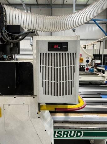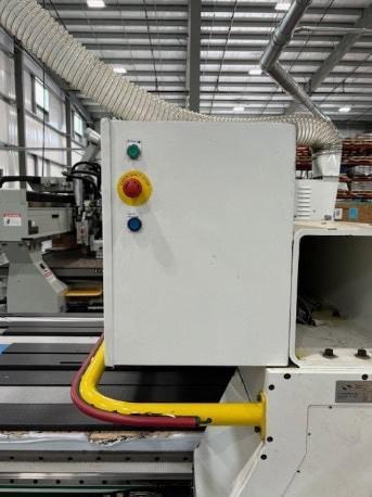 All specifications are assumed to be correct but must be confirmed by the purchasing entity.,Table Size: 5′ x 12′ X-Axis Travel: 145″ Y-Axis Travel: 61″ Z-Axis Programmable Travel: 11″ (17″ Under Bridge) All specifications are assumed to be correct but must be confirmed by the purchasing entity.,Spindle Speed: 24,000 RPM Spindle Power: 15 HP Collet Size Capacity: 1/8″ – 1″ Auto Tool Changer: 12 Positions Spindle Taper: HSK-63 6 Vertical Drills in X-Axis 5 Vertical Drills in Y-Axis 2 Horizontal Drills in X-Axis 2 Horizontal Drills in Y-Axis All specifications are assumed to be correct but must be confirmed by the purchasing entity.,Moving Gantry Machine with 61″ x 145″ Phenolic Work Table Programmable Feed Rates with Override Capability – X and Y-Axis = up to 2,000 Inches per Minute. Closed Loop Brushless AC Servo Drive System with Precision Ground Ball Screws All Axes Ride on Linear Profiled Precision Guideways. All specifications are assumed to be correct but must be confirmed by the purchasing entity.,Approx Dimensions: 16′ x 11′ x 7′ H Approx Weight: 6,000 Lbs. All specifications are assumed to be correct but must be confirmed by the purchasing entity.,Equipped with: 12 Position Rotary Tool Changer All specifications are assumed to be correct but must be confirmed by the purchasing entity. |