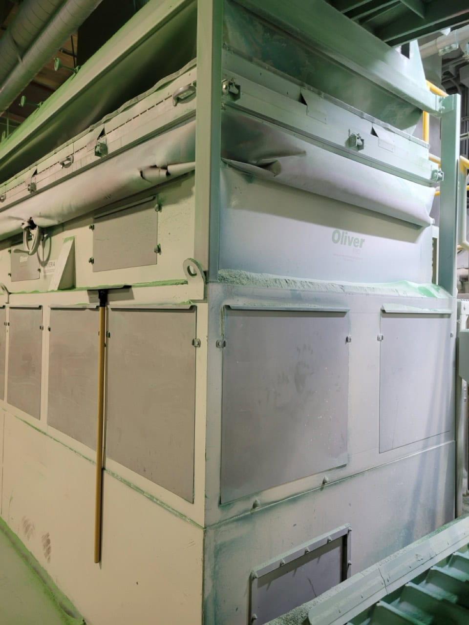 All specifications are assumed to be correct but must be confirmed by the purchasing entity.,Estimated Capacity (soy) Ambient: 1440 lbs/min All specifications are assumed to be correct but must be confirmed by the purchasing entity.,Deck Size: 72″ x 207″ All specifications are assumed to be correct but must be confirmed by the purchasing entity.,Air/Fan Zones: 3 All specifications are assumed to be correct but must be confirmed by the purchasing entity.,CFM Maximum: 32,000 CFM All specifications are assumed to be correct but must be confirmed by the purchasing entity.,480V 3PH 70A All specifications are assumed to be correct but must be confirmed by the purchasing entity.,Dimensions: 260″ x 110″ x 105″ All specifications are assumed to be correct but must be confirmed by the purchasing entity.,Weight: 7600 lbs All specifications are assumed to be correct but must be confirmed by the purchasing entity. |