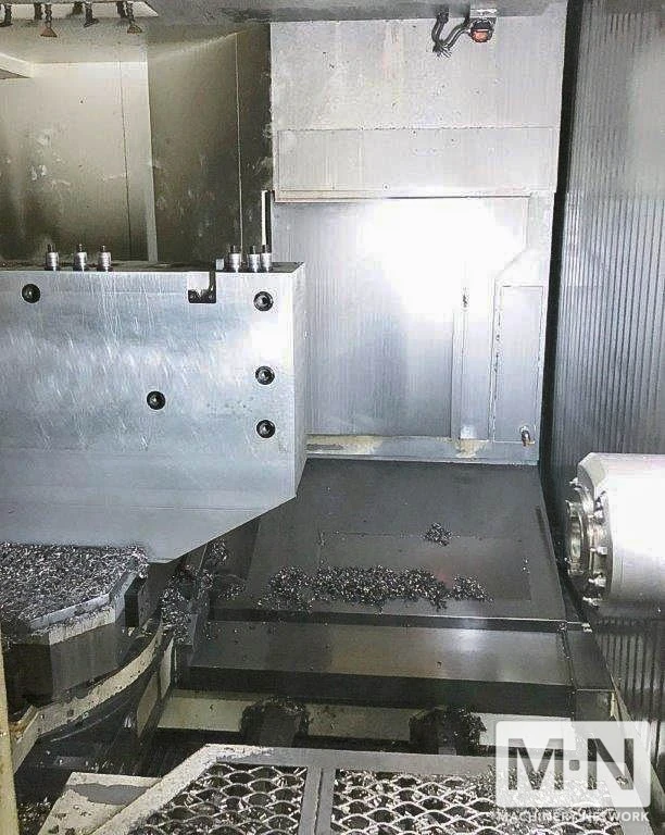 OverviewDescriptionFanuc 16i-MB control, 39" pallets, full 4th axis, coolant through spindle, Cooljet high-pressurre coolant system, Renishaw probe, 150 ATC, chip conveyor, [70] BT50 tool holders, approx 16,629 hours. Power: 40 hp