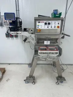 All specifications are assumed to be correct but must be confirmed by the purchasing entity.,Previously used for packaging lettuce All specifications are assumed to be correct but must be confirmed by the purchasing entity.,Includes Videojet DataFlex 6530 Thermal Transfer Printer for printing directly onto roll stock film before the tray is sealed All specifications are assumed to be correct but must be confirmed by the purchasing entity.,Specifications: – Up to 15 cycles per minute standard seal – Up to 12 cycles per minute gas flush – Air requirements: 85 psi @ 2 CFM – Electrical requirements: 208VAC, 3 ph All specifications are assumed to be correct but must be confirmed by the purchasing entity.,Sealing capacity (with appropriate tooling, not included): – One tray: 270mm L x 439mm W x 120mm Depth, 270mm Diameter – Two trays: 270mm L x 207mm W x 120mm Depth, 207mm Diameter – Three trays: 270mm L x 104mm W x 120mm Depth, 104mm Diameter – Four trays: 270mm L x 71mm W x 120mm Depth, 71mm Diameter All specifications are assumed to be correct but must be confirmed by the purchasing entity.,Dimensions: 1155mm L x 1020mm W x 1698mm H (45.47″ L x 40.16″ W x 66.85″ H) Weight: 320kg (705.48 lbs) All specifications are assumed to be correct but must be confirmed by the purchasing entity.,Features: – Automatic film feed – Quick release tooling for easy tray changeover – All around seal only (No Cut) for packs with pre-cut or hinged lids – All around seal and contoured film-cut with skeletal film rewind – Automatic seal operation with accurate seal dwell time – Food industry approved hygienic construction and wash down protection – Full Category 3 guarding All specifications are assumed to be correct but must be confirmed by the purchasing entity. |