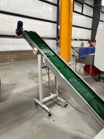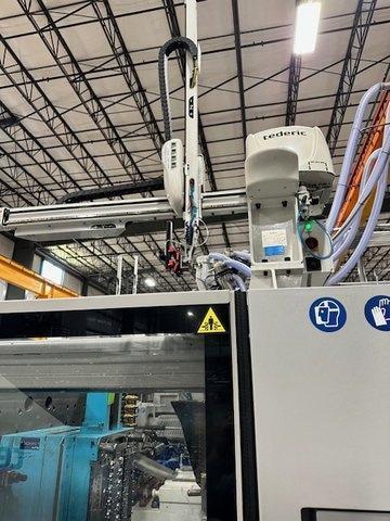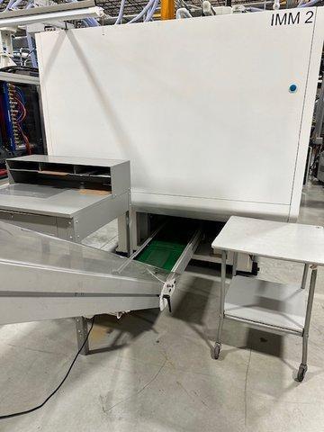 All specifications are assumed to be correct but must be confirmed by the purchasing entity.,– Barrel insulating cover – Nozzle guard – Screw rpm display – Carriage central lubrication – Ceramic heater bands – Stainless steel hopper with bearing assisted slide and discharge chute Electrical – Keba 2985 15” touchscreen controller, I4.0 ready – PhaseTM advanced drives and high-performance servomotors – 200+ mold recipe memory – All-action instant monitoring – Production monitoring – QC management – Multi-mold recipe memory – Alarm display & history – Changeover by position or pressure – I/O monitoring display – 3 color light with alarm buzzer – Motor overload protection – 2 x 480v 32a 3-ph outlets – 2 x 480v 16a 3-ph outlets – Double heating protection – Safety relay monitoring – SSR heating control General – Tederic standard colors – Anti-vibration mounting pads – Spare parts box, tools, mold clamps, consumable parts, extended nozzle & operator manual SPECIFICATIONS NEO-Ec hybrid-electric injection molding machine: NEO-E328-E500Ca (38mm, 480V 60HZ) – Keba 2985 15” touchscreen controller – units in inch and deg F – Inovance servo system 480v – servo-mechanical injection, screw rotate and clamp movements – Integrated servo-hydraulic power unit for ejector, carriage and core pulling circuits – Platens with SPI mold mounting holes, SPI ejector pattern and 4 in dia. (101.6 mm) adaptor ring – Linear bearings for moving platen guidance and support – Safety standard GB22530 (OSHA compliant) with mechanical drop bar – UL high voltage componentry – Injection pressure changeover control with injection pressure sensor – 38mm barrier screw optimized for PP in lieu of standard – 480V ceramic heater bands, barrel insulation cover & 220V nozzle with fast-blow fuse – Closed loop barrel feed throat temperature control – 1 x hydraulic core pull MP – E13 multi-pin plug and socket – 2 x air blow FP – 2 x 480V/32A + 1 x 480V/16A 5-pin 3 ph. outlets with plugs – mounted at injection end of machine – 1 x 6 in/out water manifold – non-operator side – ball valve shut-offs – 10mm quick connect fittings – E67 Robot interface – 2 pin plug & socket for color feeder signal mounted adjacent to machine hopper – Nozzle with 7/8” changeable tip (US standard) – Stainless steel hopper with bearing assisted slide and discharge chute – Conveyor – under machine conveyor SCB-350TB-5010 – 480/3/60 – Keba ServiceNetTM – IMM unlimited software license + LAN card connection (customer LAN wiring) – Keba EasyNetTM 4 Professional – IMM unlimited software license + PC unlimited license (customer supplies wiring, PC & router). Keba EasyNetTM 4 Mobile – one year cloud license for mobile devices – Spare parts package: 1 set heater bands & TC, fuses, SSRs, screw tip assembly, filters All specifications are assumed to be correct but must be confirmed by the purchasing entity.,Clamping Unit: Clamping Force: 3280 kN / 369 ton Clamping Stroke: 580 mm / 22.83 in Tie Bar Distance (h x v): 700 mm x 650 mm / 27.56 in x 25.59 in Tie Bar Diameter: 120 mm / 4.72 in Platen Dimensions: 1050 mm x 1000 mm / 41.34 in x 39.37 in Max./Min. Mold Height: 700 mm / 280 mm / 27.56 in / 11.02 in Max. Daylight: 1280 mm / 50.39 in Ejector Stroke: 150 mm / 5.91 in Ejector Force: 134 kN / 15.0 ton Injection Unit: Screw Diameter A: 38 mm / 1.50 in Screw Diameter B: 42 mm / 1.65 in Screw Diameter C: 45 mm / 1.77 in Screw L/D Ratio A: 22.1 L/D Screw L/D Ratio B: 20.0 L/D Screw L/D Ratio C: 18.7 L/D Shot Volume A: 204 cm3 / 12.4 in3 Shot Volume B: 249 cm3 / 15.2 in3 Shot Volume C: 286 cm3 / 17.5 in3 Shot Weight A: 186 g / 6.6 oz Shot Weight B: 227 g / 8.0 oz Shot Weight C: 260 g / 9.2 oz Injection Pressure A: 35390 psi / 1950 bar Injection Pressure B: 28964 psi / 1596 bar Injection Pressure C: 25237 psi / 1391 bar Holding Pressure A: 28283 psi Holding Pressure B: 23148 psi Holding Pressure C: 20175 psi Injection Rate A: 226 cc/s / 13.81 in3/s Injection Rate B: 277 cc/s / 16.88 in3/s Injection Rate C: 317 cc/s / 19.37 in3/s Screw Stroke: 180 mm / 7.09 in Injection Speed: 200 mm/s / 7.87 in/s Plasticizing Capacity A: 50.0 g/s Plasticizing Capacity B: 63.0 g/s Plasticizing Capacity C: 67.0 g/s Screw Rotation Speed: 350 rpm Nozzle Contact Force: 82 kN / 9.22 ton Barrel Heater Power: 20.4 kW Hopper Capacity: 10 kg / 22 lb General: Weight: 15600 kg / 34392 lb Overall Dimensions: 7230 mm x 1979 mm x 2300 mm / 23.72 ft x 6.49 ft x 7.55 ft Pump Motor Power: 11.0 kW Total Power Capacity: 45.0 kVA Overall Height: 1645 Overall Length: 2150 Horizontal Traverse: 1400 Overhang Release Side: 550 Overhang Extract Side: 400 Vertical Stroke: 900 Vertical Home Position: 55 Strip Arm Length: 1175 Depth: 390 All specifications are assumed to be correct but must be confirmed by the purchasing entity.,Max Strip Reach: 855 Strip Stroke: 690 Strip Home Position: 120 Traverse Stroke: 1400 Strip Stroke: 690 Vertical Stroke: 900 Payload: 6 Installed Power: 2 Electrical Supply: 230V/60/1 Net Weight: 225 All specifications are assumed to be correct but must be confirmed by the purchasing entity. |