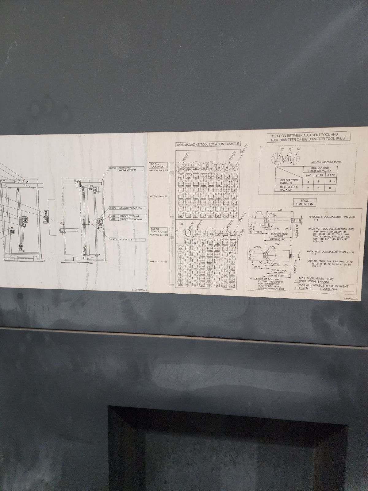 All specifications are assumed to be correct but must be confirmed by the purchasing entity.,ATC Capacity: 60 tools (optional 40, 134, 219, 313) Tool to Tool: 0.9 secs Chip to Chip: 2.2 secs Maximum Tool Length (Cat): 430 mm Maximum Tool Length HSK: 420 mm Maximum Tool Diameter : 170 mm Maximum Tool Weight: 12Kg All specifications are assumed to be correct but must be confirmed by the purchasing entity. |