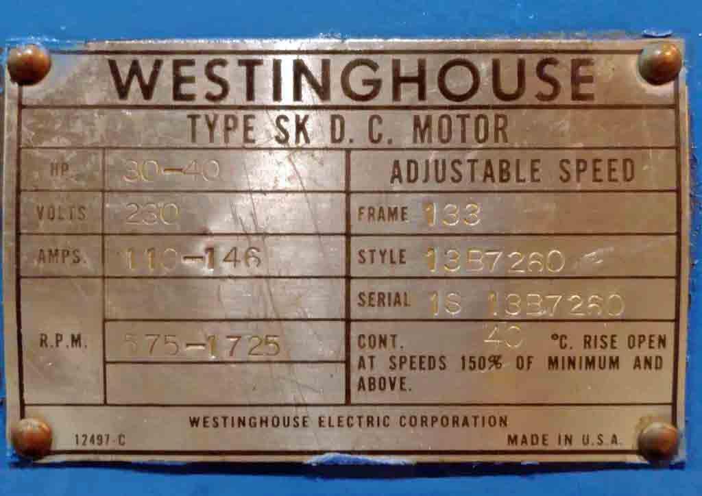 Stock # 14374 -Capacity: 10,000# x 32" -Machine No.: 2361 -20" Dia. x 35" Face Drum -Manual Clamp and Expansion -44.5" Passline from Floor to center of Drum -Hydraulic Pushoff -Overarm Separator -64" O.D. Capacity -30/40 HP Westinghouse DC Motor w/MG Set 575/1725 RPM, 230 V -Thru Reducer w/26.05:1 Ratio -Electric Holding Brake -Powered lubrication for Gearbox -Overall Size: 134" L x 84" W x 77" High **Temporary Specifications Subject to Revisions** **PRICE QUOTED AS IS WHERE IS SUBJECT TO PRIOR SALE** **ALL SPECIFICATIONS ARE SUBJECT TO BUYERS VERIFICATION** |