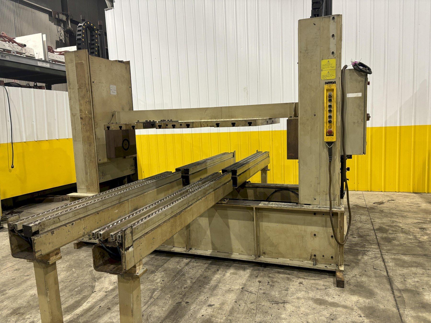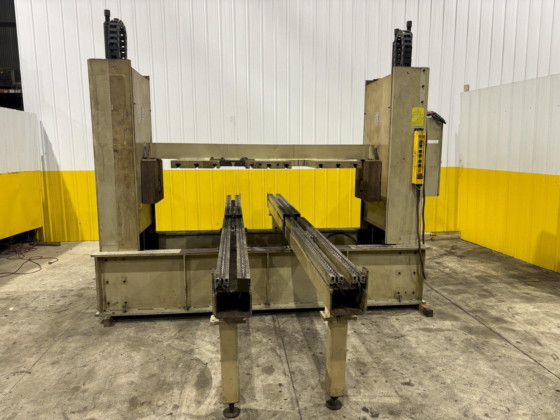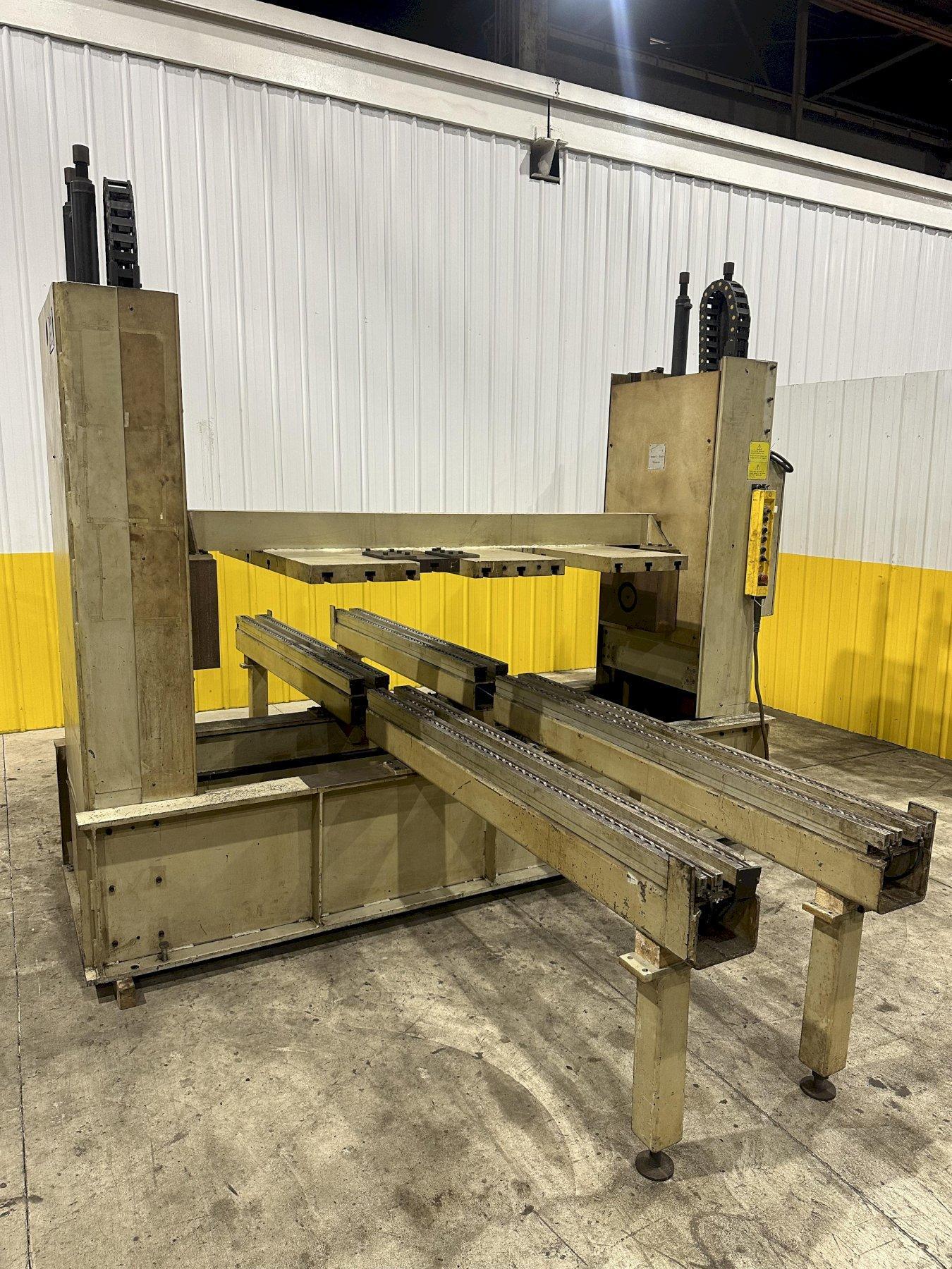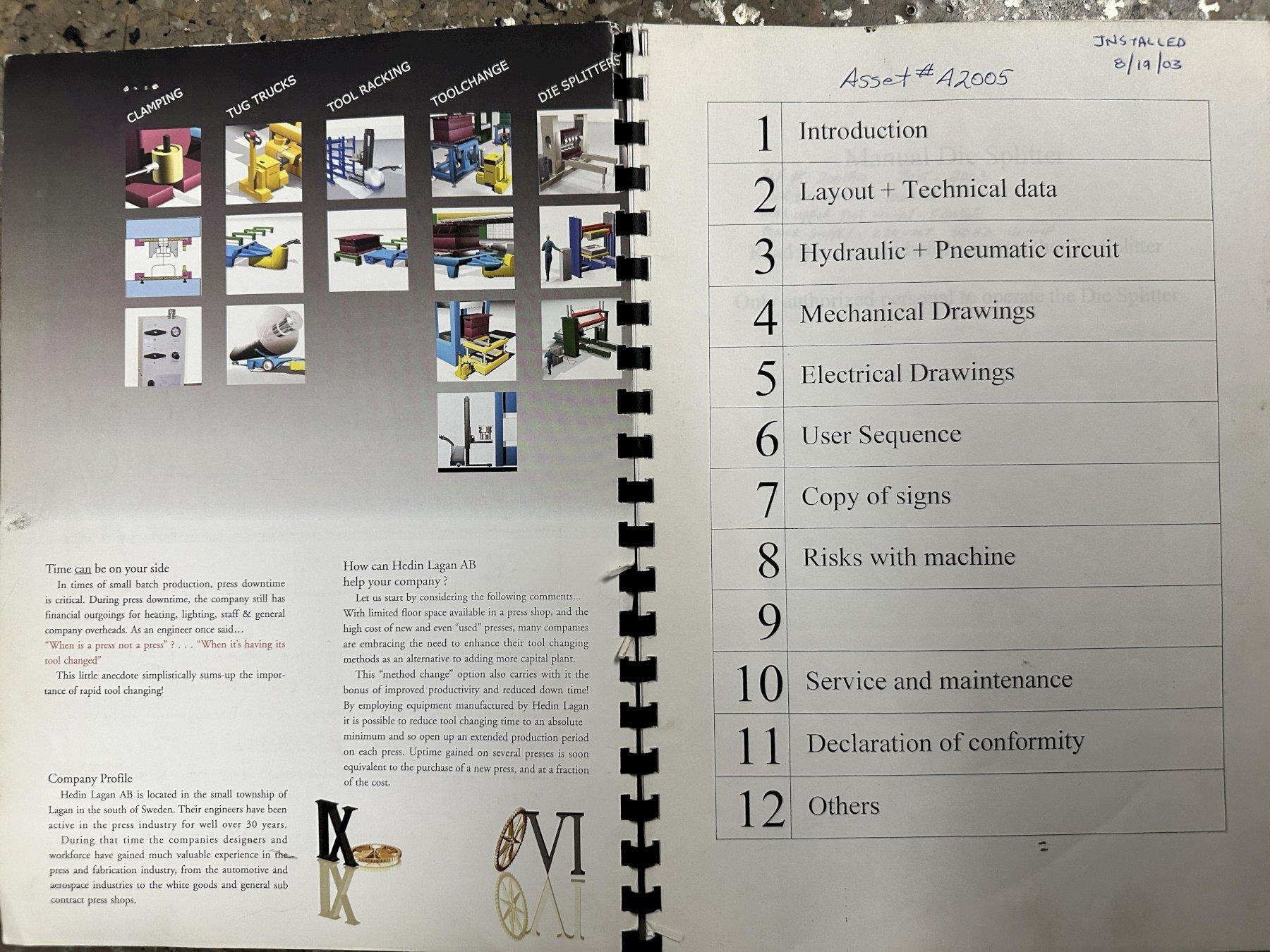 NEW ................... 2003 DIE WEIGHT ............ 10,000 LB. TOTAL UPPER DIE WEIGHT ...... 5,000 LBS MAX DIE AREA .............. 78" L-R X 51" F-B VERTIAL GAP AREA ...... 6" TO 45" FLOOR TO BED .......... 35" ROLLER SUPPORTS ....... 48.5" LONG HYDRAULIC MOTOR ....... YES |