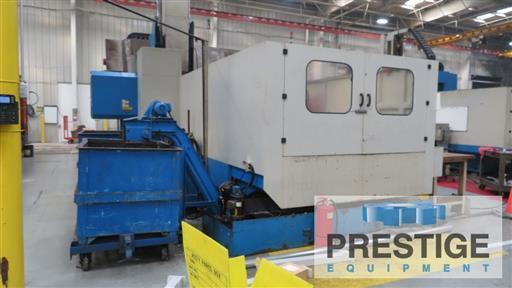 X-Axis, Table Travel 165.35" Y-Axis, Spindle Head Travel 90.55" Z-Axis, Vertical Travel 36.22" Distance Between Columns 94.48" Spindle Nose to Table 5.9"-42.12"" Table Size 80.70" x 165.35" Table Load Capacity 28,600 lbs Spindle Taper CAT 50 Spindle Speeds (2-Gear Ranges) 50-8,000 RPM Spindle Motor 30 HP Estimated Machine Weight 84,581 Lbs Equipped With: Fanuc 18iMB CNC Control HPCC Data Server, Nubs, Ris 40 Station Automatic Tool Changer Coolant Thru Spindle Coolant Thru Ball Screws Pre-Wired for 4th Axis Chip Conveyor NOTE: Inspect In Plant Under Power, Machining Aluminum, Tooling Not Included |