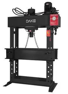 • 220-volt 3-phase motor with plug makes for greater portability. • Welded steel frame for rigidity. • Pressure gauge • Double acting cylinder. • Fast, quiet, dependable, economical price, smooth operating press that is very simple to operate. • Heavy adjustable table can be set to a comfortable work height via lifting chains and Workhead. Massive table pins keep the table securely in place during the pressing operations. • Panel mounted 24-volt CE approved with joystick operation. • Head traverses left to right. • V-Blocks • Manual & Electric Operation NOTES: SPECIFICATIONS SUBJECT TO VERIFICATION DELIVERY: SUBJECT TO STOCK |