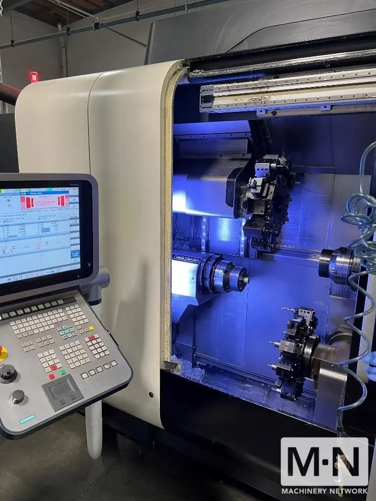 OverviewDescription32.2hp, 7k rpm, 2.0" bar diameter, 5.5" chuck, 12 ATC, two turrets, tailstock, chip conveyor GILDEMEISTER SPRINT 50 with Two Turrets