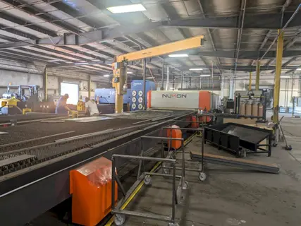 All specifications are assumed to be correct but must be confirmed by the purchasing entity.,Max Load Capacity: 4,400 lbs Acceleration Speed: Axis Speed (X,Y Simultaneous): 9,500 IPM Positioning Accuracy: 0.0019685″ Shuttle Table Change Time: 27 Sec. Controller: 19″ MultiTouch Screen All specifications are assumed to be correct but must be confirmed by the purchasing entity.,Max cut mild steel: 98″ Max cut stainless steel: 78″ Max cut aluminum: 59″ Max cut brass: .394″ Max cut copper: .394 Power supply consumption: 65 kW All specifications are assumed to be correct but must be confirmed by the purchasing entity.,Equipped With: Dust Collector Chiller YLS Power Source 40′ Table All specifications are assumed to be correct but must be confirmed by the purchasing entity. |