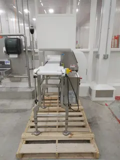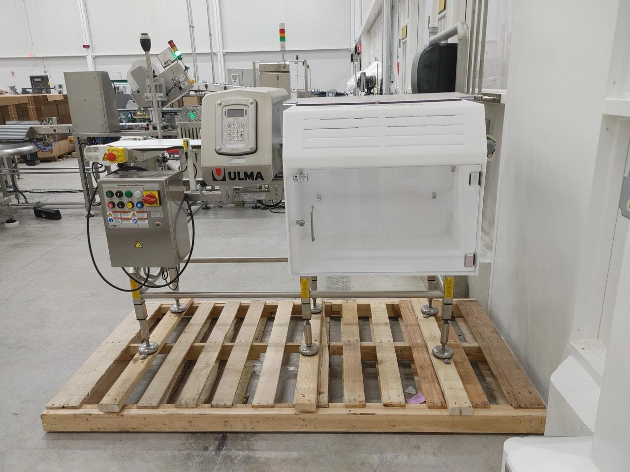 All specifications are assumed to be correct but must be confirmed by the purchasing entity.,– The conveyor height is 40” with adjustability up and down – The aperture size is 250mm X 175mm (9.84″ x 6.89″) – Requires air and 110V hookups to function – Has an automatic reject function that can reject up to 5lb items – Variable speed control – Currently bolted to a 48” x 72” pallet – Approximately 45” at the widest, 70” in length, and 60” tall All specifications are assumed to be correct but must be confirmed by the purchasing entity. |