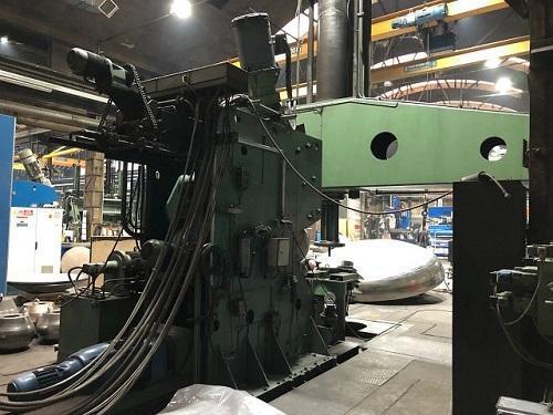 MAXIMUM WALL THICKNESSES: MATERIAL UP TO APPROX. 450 N/MM² MAX. 22MM (STEEL) MATERIAL UP TO APPROX. 750 N/MM² MAX. 17.5MM (STAINLESS STEEL) MAXIMUM DIAMETER : DISHED END APPROX. 5000 MM BASKET ARCH BOTTOM APPROX. 3200 MM MINIMUM DIAMETER : DISHED END APPROX. 1200 MM CORNER RADIUS : RANGE 150 - 500 MM LARGEST CORNER RADIUS 500 MM CLEAR WIDTH CLAMPING BRACKET APPROX. 5800 MM MAX. SHEET THICKNESS CLAMPING APPROX. 32 MM ELECTRICAL POWER : MAIN DRIVE APPROX. 55KW SHIFTING DRIVE APPROX. 1,5/9 KW HYDRAULIC UNIT APPROX. 11 KW ADDITIONAL PRESSURE ROLLER DRIVE APPROX. 7,5 KW
