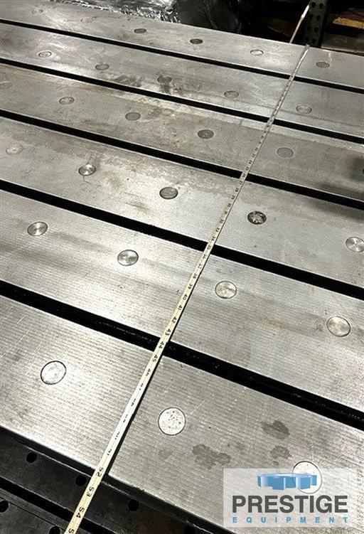 52" X 388" X 11"/34" T-Slotted Planer Table Width, Overall 52" Length, Overall 388" Length, Each Plate (2)................. 194" 194" T-Slotted Plates Thickness 11" Base/Riser, Overall Height 34" Distance Between T-Slots 9" No. T-Slots 5 Note: This Planer Table consist of (2) 52" x 194" Tables! Overall Length: 388" Condition: Excellent! |