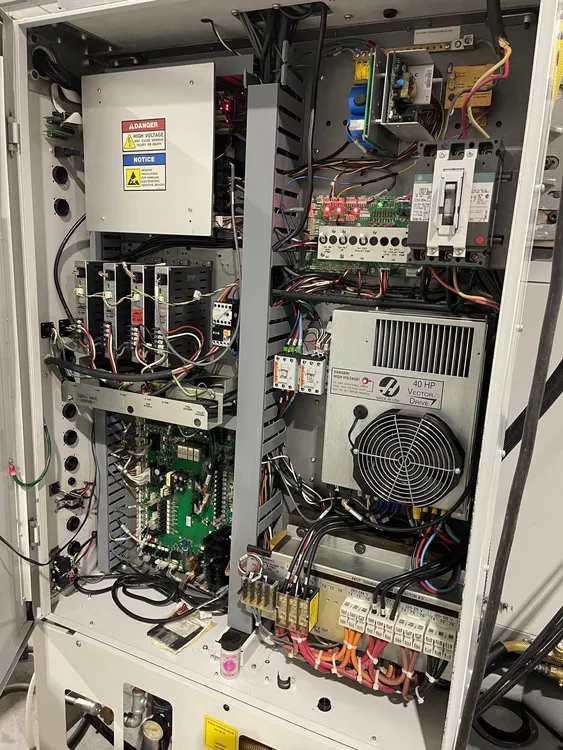 Stock #-7102 Model # VM-2 Serial # 1053004 Year of manufacture- 10/2006’ Table size- 18” x 36” Number of T-slots- (3) Max table weight- 3000 Lbs. Travels- X axis- 30” Y axis- 20” Z axis- 20” Maximum distance from spindle nose to table- 24” Minimum distance from spindle nose to table- 4” Maximum spindle speeds- 12,000 R.P.M. Spindle taper- CAT-40 Max cutting rate- 500 I.P.M. X,Y,Z Rapids- 710 I.P.M. Side mount tool changer- 24 +1 Tool capacity Max tool diameter- 3” Max tool length- 11” Max tool weight - 12 Lbs. |