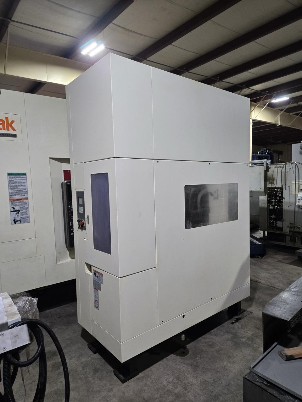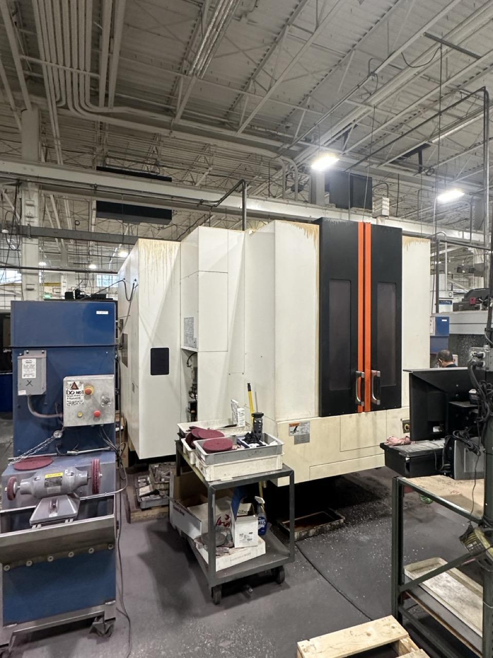 All specifications are assumed to be correct but must be confirmed by the purchasing entity.,SPINDLE (standard) Spindle taper hole: 7/24 taper, No. 40 (standard) Spindle speed maximum: 18,000 min⁻¹ All specifications are assumed to be correct but must be confirmed by the purchasing entity.,TABLE & PALLET Pallet width: 15.75 inches Pallet length: 15.75 inches All specifications are assumed to be correct but must be confirmed by the purchasing entity.,ATC TOOL MAGAZINE No. of tool pockets (standard): 40 All specifications are assumed to be correct but must be confirmed by the purchasing entity.,MACHINE SIZE Width: 87.01 inches Length: 181.93 inches All specifications are assumed to be correct but must be confirmed by the purchasing entity.,Equipped With: -Full 4th Axis -CAT 40 Taper -Chip Conveyor -Probing -80 Tools All specifications are assumed to be correct but must be confirmed by the purchasing entity. |