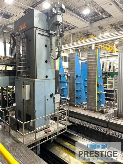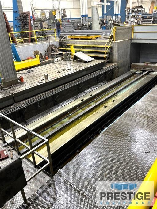 Spindle Diameter 6.3" Milling Sleeve Flange Diameter 11.81" Ram Dimensions 19.68" X 23.62" Spindle Taper #50 ISO X-Axis, Column Travel X-Axis 669.29" Y-Axis, Vertical Head Travel 157.48 Z-Axis, Spindle Travel 39.37" W-Axis, Ram Travel 59.05" Combined Travel, Z & W Axis 98.42" Spindle Speeds 4-Ranges Spindle End Thrust 5900 kgf Spindle Speeds, Infinitely Variable 2.8-810 RPM Rapid Traverse, All Axes 196.85 IPM Feeds, All Axes, Infinitely Variable 0.0393 to 118.11 IPM Main Drive Motor 85 HP Machine Weight 304,237 Lbs Equipped With: GE CNC Control Power Adjustable Pendant Control Power Tool Lock & Eject Telescoping Steel Way Covers On X-Axis Chip Conveyor 85 HP Main Drive Motor NOTES: Inspect Under Power |