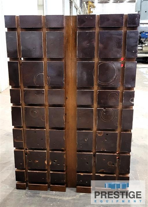 Height 60" Width 40" Depth 30" # of T-Slots, Horiz., Front/Rear 8 T-Slot Center Distance. Horizontal 8" # of T-Slots, Vert.,Front 5 T-Slot Center Distance, Vert./Front 8" # of T-Slots, Vert.,Rear 4 T-Slot Center Distance, Vert./Rear 8" T-Slot Dimensions 1.812" x .812" x 1.75" Approximate Weight 5,600 Lbs Equipped With: T-Slots on Front & Rear Fabricated Horizontal/Vertical T-Slots |