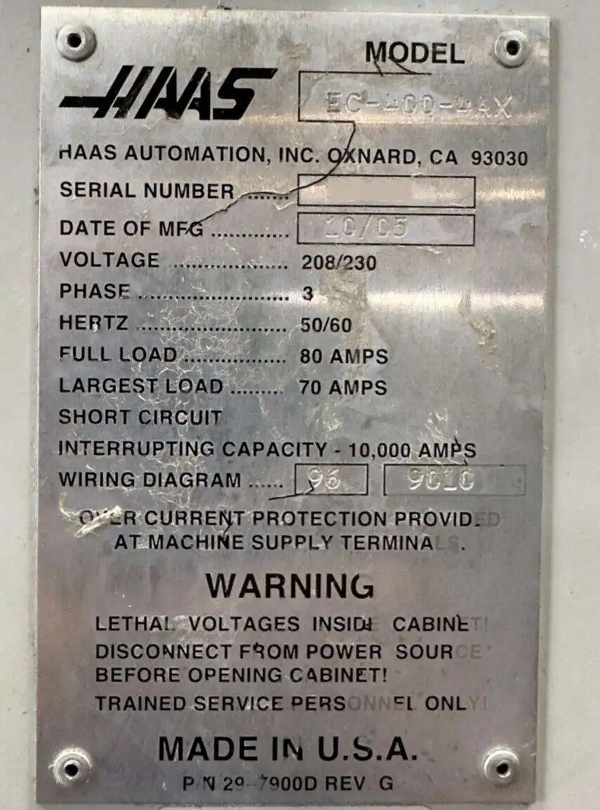 Haas EC-500-4AX CNC Horizontal Machining Center – TSC, 70 ATC, 12,000 RPM...
