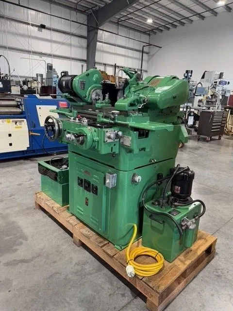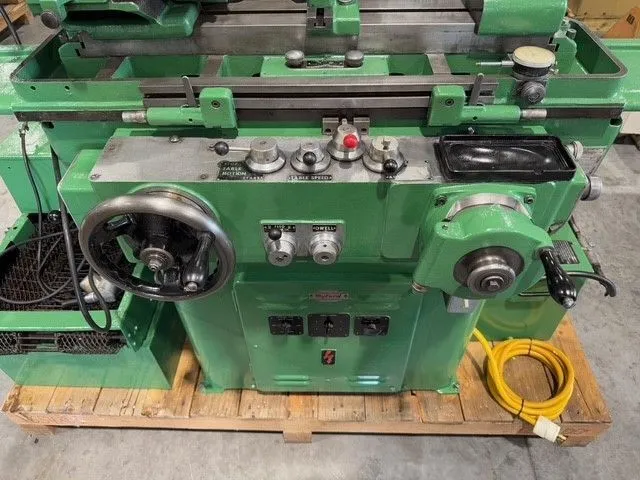 Reference #7181 Model # MG-12HA Serial # HA-82413-CB Maximum grinding diameter- 3” Swing over table- 5” Maximum table travel- 13-3/4” Capacity between centers- 12” Table swivels either way- 10° Hydraulic table traverse- 0 – 120 I.P.M. Table travel per revolution of handwheel- 0.44” Dwell (carriage)- 0 – 8 Seconds Wheelhead: Total travel by feedscrew- 3-7/8” Hydraulic rapid retraction- 1-1/8” In-feed per revolution of handwheel- 0.025” In-feed, automatic (mechanical)- 0.0001” – 0.001” Wheel feed graduations- 0.0001” Fine feed to dead stop (in-feed)- 0.000025” Spindle speeds- 1,830 & 1,988 R.P.M. Grinding wheel size- 12” x 1-1/2” width 5” bore Infeed operated on table reversal variable between- 0.0001” & .001” Workhead: Workspeeds, steplessly variable- 100 to 900 R.P.M. Workhead motor, direct current drive- ¼” H.P. |