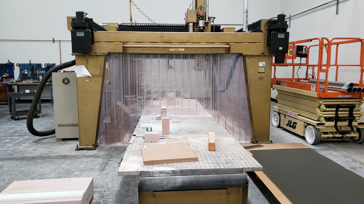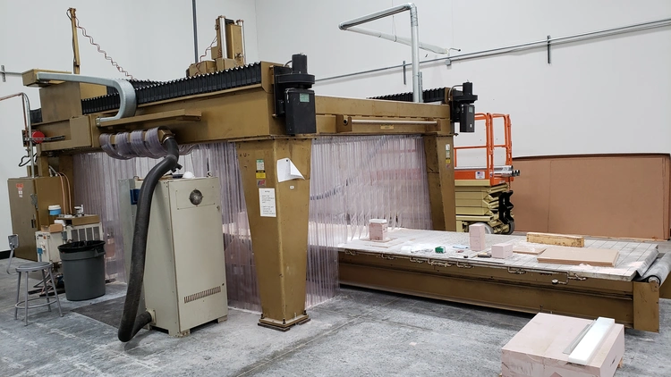 OverviewDescriptionPowermatic 5-Axis Router, Fanuc 15M Control Powermatic 5-Axis CNC Router Equipped With:: Fanuc 15M Control Control Cabinet: 24” wide x 28” deep Powermatic (not including moveable bed) Footprint: 202” wide (along X) x 158” deep (along Y) with 4 - 14”x14” feet Max Dimensions: Long: 202” + 15” cabinet on left + 15” cabinet on right Deep: 158” + 15” cabinet in back + 15” cabinet in front |