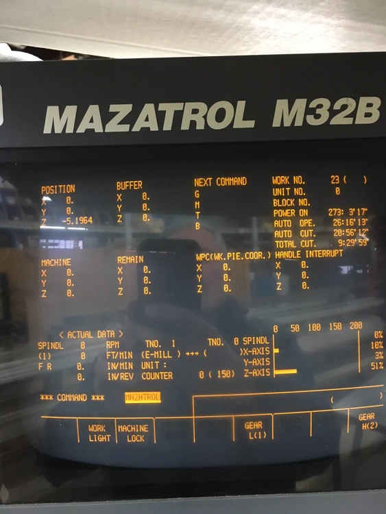 Mazak VTC16A Traveling Column VMC, 1995. 22"x16"x20", CT40, 7K RPM, Mazatrol M32B Ctrl, Helical Interpolation, Rigid Tapping Mazak VTC16A CNC Traveling Column Vertical Machining Center New: 1995 Specifications: Table Size: 35.43” x 16.14” Travels: X-Axis: 22.05” Y-Axis: 16.14” Z-Axis: 20.08” Spindle Nose-Top: 4.3” – 24.4” Spindle C/L to Column: 18.1” Spindle Taper: CAT 40 Spindle Speed: 7000 RPM Spindle Motor: 15 HP Tool Capacity: 24 Max Tool Diameter: 3.1” – 4.3” Max Tool Length: 13.8” Rapid Traverse: 787 IPM (X/Y), 590 IPM (Z) Equipped With: Mazatrol M32B CNC Control EIA/ISO Input Function Automatic Tool Length Measurement Helical Interpolation Rigid Tapping Manuals Machine Dimensions: 101.3" x 109" x 106", 8670 lbs |