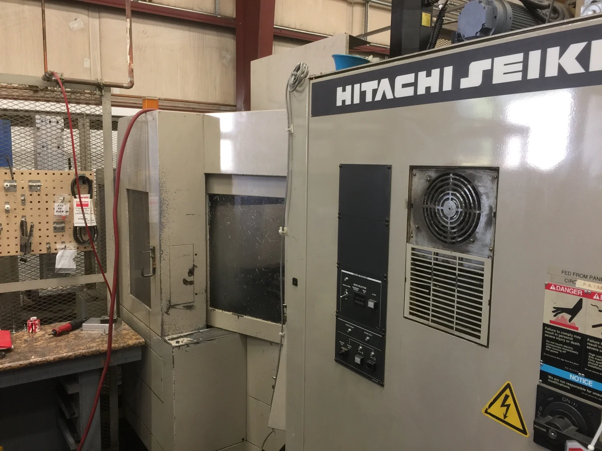 OverviewDescription1999 Hitachi Seiki HG-400 w/ 4th Axis, (24) 16" Pallets, 22"x23"x20", CT40, 12K RPM, 120 ATC, Mark III Ctrl (1) USED HITACHI SEIKI HG-400 HORIZONTAL MACHINING CENTER New: 1999 Specifications: Travels: X-Axis: 22" Y-Axis: 23" Z-Axis: 20" Pallet size: 15.75" x 15.75" Number of Pallets: 24 Pallets (2 levels x 12) Spindle Speed: 12K RPM Spindle Taper: CAT 40 Motor: 15 HP Feed Rate Rate: 0.01 - 630 IPM Machine Dimensions: 244" x 113" x 126" Machine Weight: 33,500 lbs. Equipped With:: Mark III Control 120 Tool ATC NOTE: Machine can be seen under power in plant. Only used to cut aluminum. Spindle is vibrating at 8-10K RPM and needs to be chromed and regrinded. All other features on the machine are in good condition. |