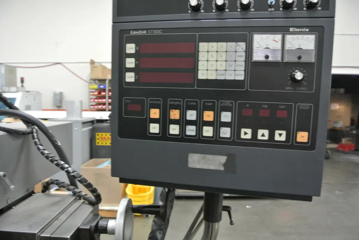 Elenix /SJR Control: Inch/Metric Conversion XYZ DRO Drill Depth Input Electrode Retract Input Auto Mode Input/Output for Indexing or Rotary Table Automated Initial Zero Set Discharge on Timer Voltmeter & Ammeter |