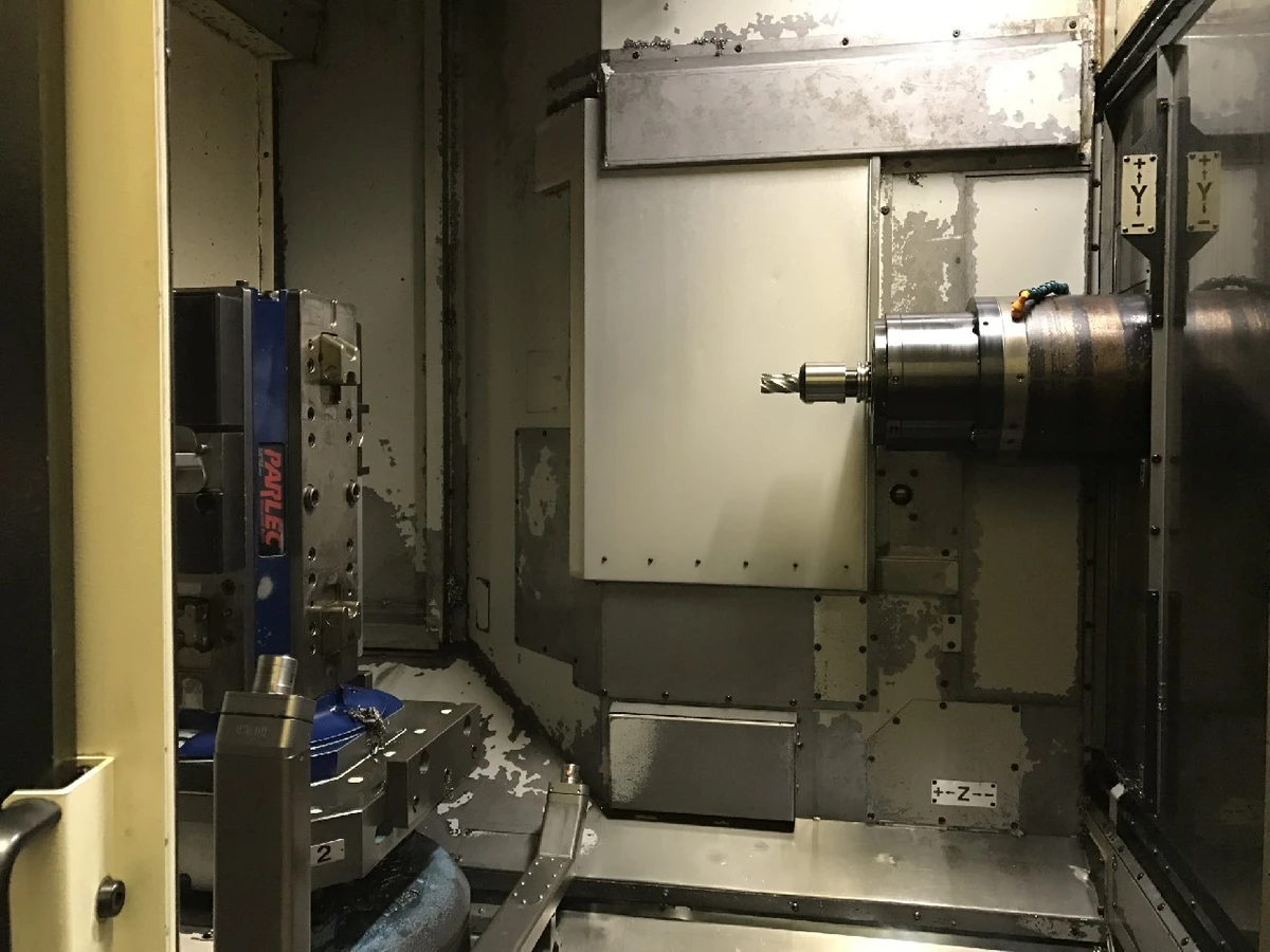 Equipped With:: Makino Professional 3 CNC Control Full 4th Axis NC Rotary Table 60 Tool ATC Renishaw Probe NC4 Tool Breakage Detection (upgraded from NC1 Laser in 2015) JS Retention Stud Pallet Changer w/ Safety Cover, Door Interlock 300 PSI Thru Spindle Coolant Coolant System w/ 26 Nozzles Lift-up Chip Conveyor Splash Guard Transformer Helical Interpolation Tool Offset Macros Cutting Hours: 43,136 $360,000 New Price As Equipped |