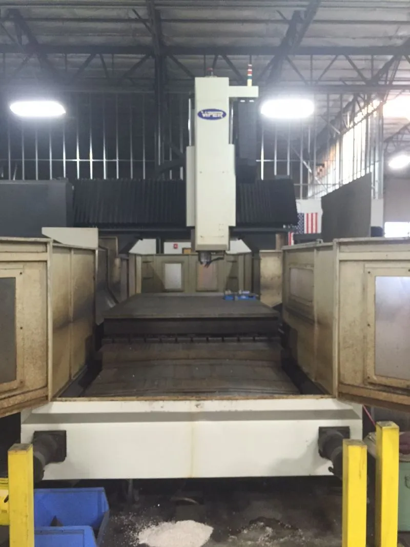 OverviewDescriptionMighty Viper HB-3190A, 116" x 76" x 35", Dual Auger, CAT50, 50HP, Fanuc 21iMB Ctrl, Conveyor Mighty Viper HB-3190A CNC Vertical Machining Center New: 2006 Specifications: Travels: X-Axis: 116" Y-Axis: 76" Z-Axis: 35" Spindle Taper: CAT 50 Spindle Motor: 50HP Equipped With:: Fanuc 21i-MB CNC Control Conveyor w/ Turnings Hopper Dual Auger System Custom 12" Riser: more rigidity of head CAT50 Tooling |