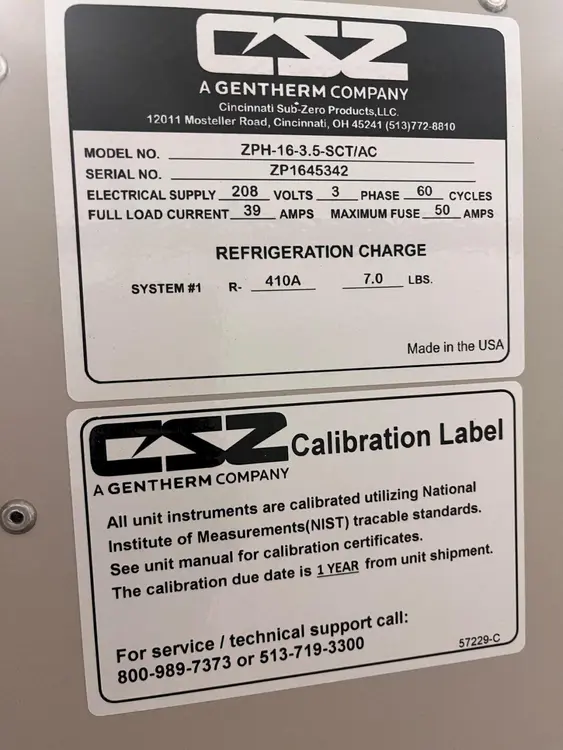 Cincinnati Sub Zero CSZ Temp/Humidity Chamber Model ZPH-16-3.5-SCT/AC