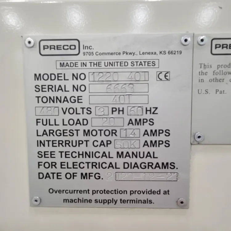 Preco Model 1220-40T Hydraulic Die Cutting Press