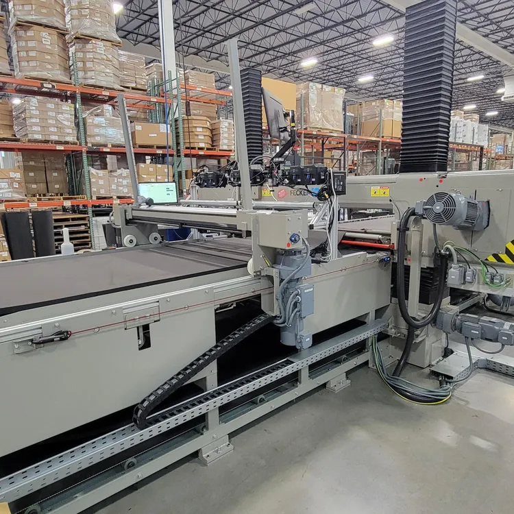 2021 Fecken & Kirfel H42A Horizontal Bandknife Splitting Machine 50' Return Conveyor, Glue Trimming and Splitting Units Fecken & Kirfel H42A Horizontal Bandknife Splitting Machine