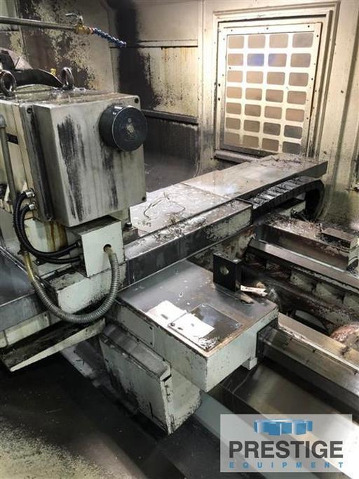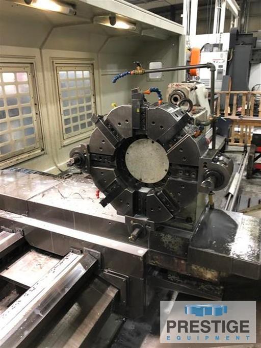 Swing Over Bed 42" Swing Over Cross Slide 27" Turning Length 160" Spindle Bore 10" Spindle Speeds, Max 1-420 RPM Spindle Motor 30 HP Electrics 220/3/60 Equipped With: Fanuc OiTC CNC Controls 8-Position Turret 24" 4-Jaw Front Chuck 30" 3-Jaw Rear Chuck 10" Spindle Bore Chip Conveyer |