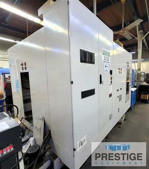X-Axis Travel 23.62" Y-Axis Travel 22.05" Z-Axis Travel 23.62" B-Axis Pallet Rotation 1° Pallet Dimensions, 2 15.75" x 15.75" Max. Workpiece Weight 1,100 Lbs Spindle Speeds 14,000 RPM Spindle Taper CAT 40 Spindle Nose - Table Center 5.91" - 29.53" Spindle Center - Pallet Top 1.97" - 24.02" Cutting Feedrate .04 - 1181.1 IPM Rapid Traverse 2362.2 IPM Positioning Accuracy +/- .0002 Repeatability +/- .00008 Max. Tool Length 11.81" Max. Tool Weight 22 Lbs Approx. Machine Dimensions 224" x 104" x 113" Approx. Machine Weight 30,000 Lbs Equipped With: Fanuc 18i-MB CNC Control 60-Station Automatic Tool Changer 2-Station Automatic Pallet Changer 14,000 RPM Spindle Coolant Thru Spindle (284 PSI) Daikin Chiller Unit Chip Conveyor All Available Manuals & Documentation NOTE: Vises & Tombstones Not Included with Machine |