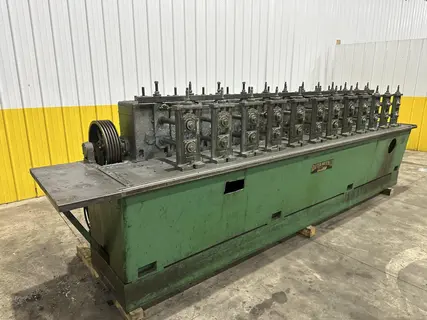 NUMBER OF STANDS ........... 12 ARBOR DIAMETER ............. 1.5" ROLL SPACE ................. 12" HORIZONTAL CENTERS ......... 12" BASE TO LOWER SPINDLE ...... 5.5" VERTICAL ADJUSTMENT ........ 4" TO 7" NO MOTOR OR DRIVE |