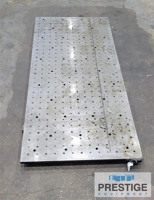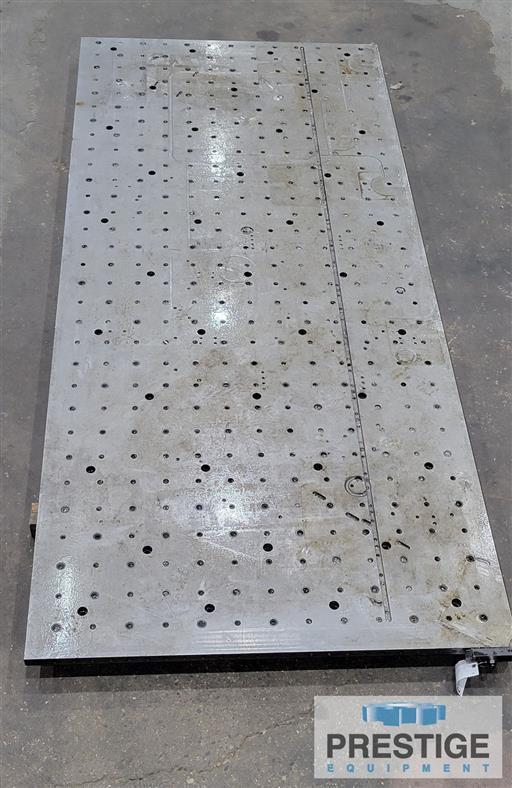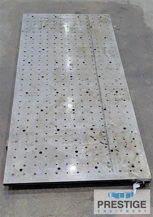 Length 125.5" Width 54.5" Thickness 1.5" Weight 2,900 Lbs Threaded Holes On Sides of Plate 1/2-13 2" Centers Threaded Holes On Top of Plate 3/4-10 4" Centers Equipped With: Drilled & Tapped Steel Construction |
