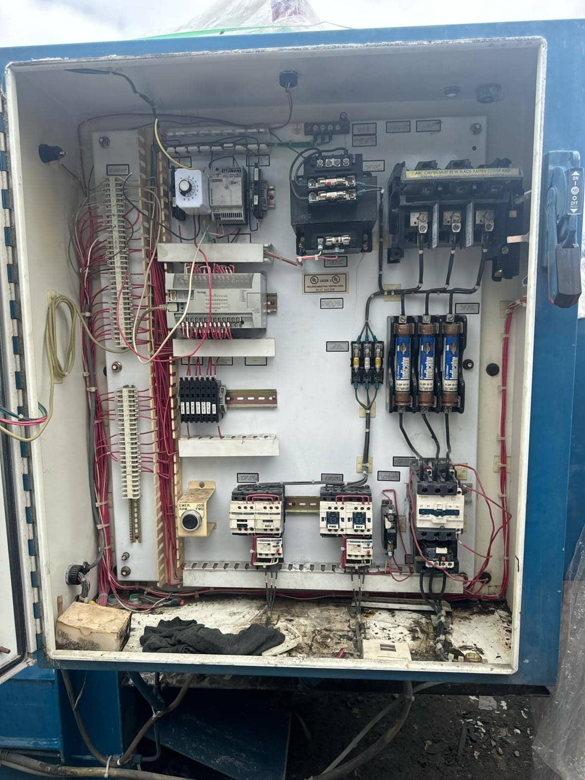 All specifications are assumed to be correct but must be confirmed by the purchasing entity.,MOTOR SPECS HP: 25 HP Amps: 63.4-58.8/29.4 Frame: 284TC Volts: 208-230/460 RPM: 1775 Phase: 3 All specifications are assumed to be correct but must be confirmed by the purchasing entity.,HYDRAULICS Main Cylinder OD: 6″ Rod Size: 3.5″ Tension Cylinder OD: 6″x 4 Tension Rod OD: 2.5″x4 Oil Cooler: Yes All specifications are assumed to be correct but must be confirmed by the purchasing entity.,PLC Make: Allen-Bradley Model: MicroLogix 1200 All specifications are assumed to be correct but must be confirmed by the purchasing entity. |