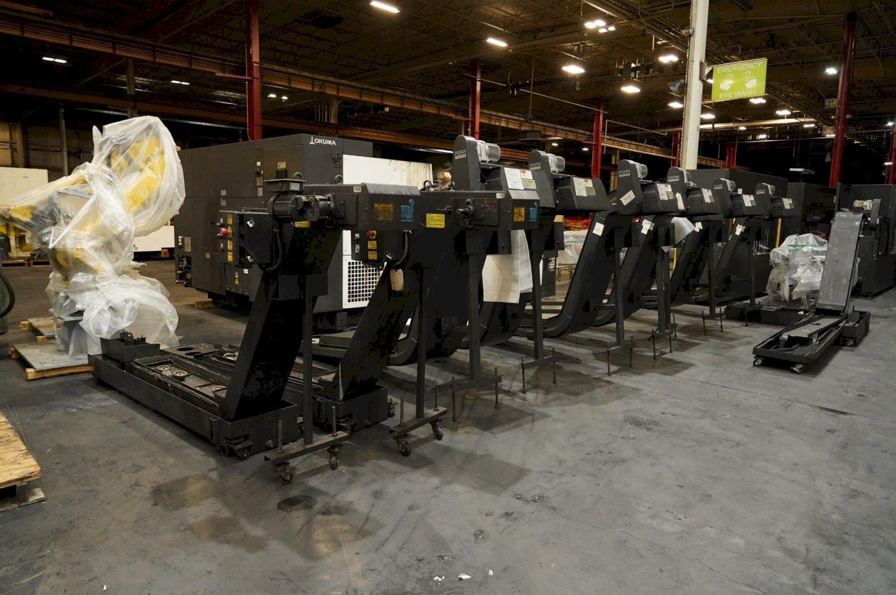 All specifications are assumed to be correct but must be confirmed by the purchasing entity.,Equipped With: Okuma OSP-P300LA Control Robot Loader Chip Conveyor Transformer 220/480, 3 Phase, 60 Hz, 55.1 kVA, Full Load Current 144.7 / 66.3 A, Largest Motor Rating 48 A, Interrupting Capacity 30 / 10 kA, SCCR of Control Panel 10 kA All specifications are assumed to be correct but must be confirmed by the purchasing entity.,**Have Inspection Reports from Gosiger** All specifications are assumed to be correct but must be confirmed by the purchasing entity.,Machine powered on without any major alarms Had to set the coolant low input and air PSI input in order to move the axis. Machine had a Battery life alarm due to being out of service, Backups performed Machine had a broken load cable track on top and was missing the chucks R-L side. Machine is equipped with air knife and one was broken. Axis and spindles operate normally. Loader axis operate normally. Machine was test without stocker table installed and appears that when it was in operation the parts were placed on a conveyor. inbound outbound. All specifications are assumed to be correct but must be confirmed by the purchasing entity. |