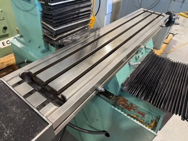 Reference # 7294 Model # SPORT B3 Serial # 97-0002 Year of manufacture- 1997’ CNC control was updated in 6/2018’ Capacity: Drilling, mild steel- 1-1/2” Tapping- 1-1/4” Milling- 3” Boring- 4-3/4” Table working surface- 10” x 50” Number of t-slots- (3) Maximum weight of workpiece- 1,320 Lbs. Longitudinal travel (X) – 31” Cross travel (Y)- 17” Head (Z)- 23.5” Quill travel- 5” Minimum/Maximum distance, spindle nose gage line to table- 0”/24” Distance, centerline of spindle to face of column- 17.3” Maximum uniform table load- 1,320 Lbs. (3) Power quill feeds- .002, .004, .006 I.P.M. Infinitely variable spindle speeds, manually controlled- 70 – 4,200 R.P.M. Spindle taper- #40 N.S.T. Milling head swivels right and left- 90° |