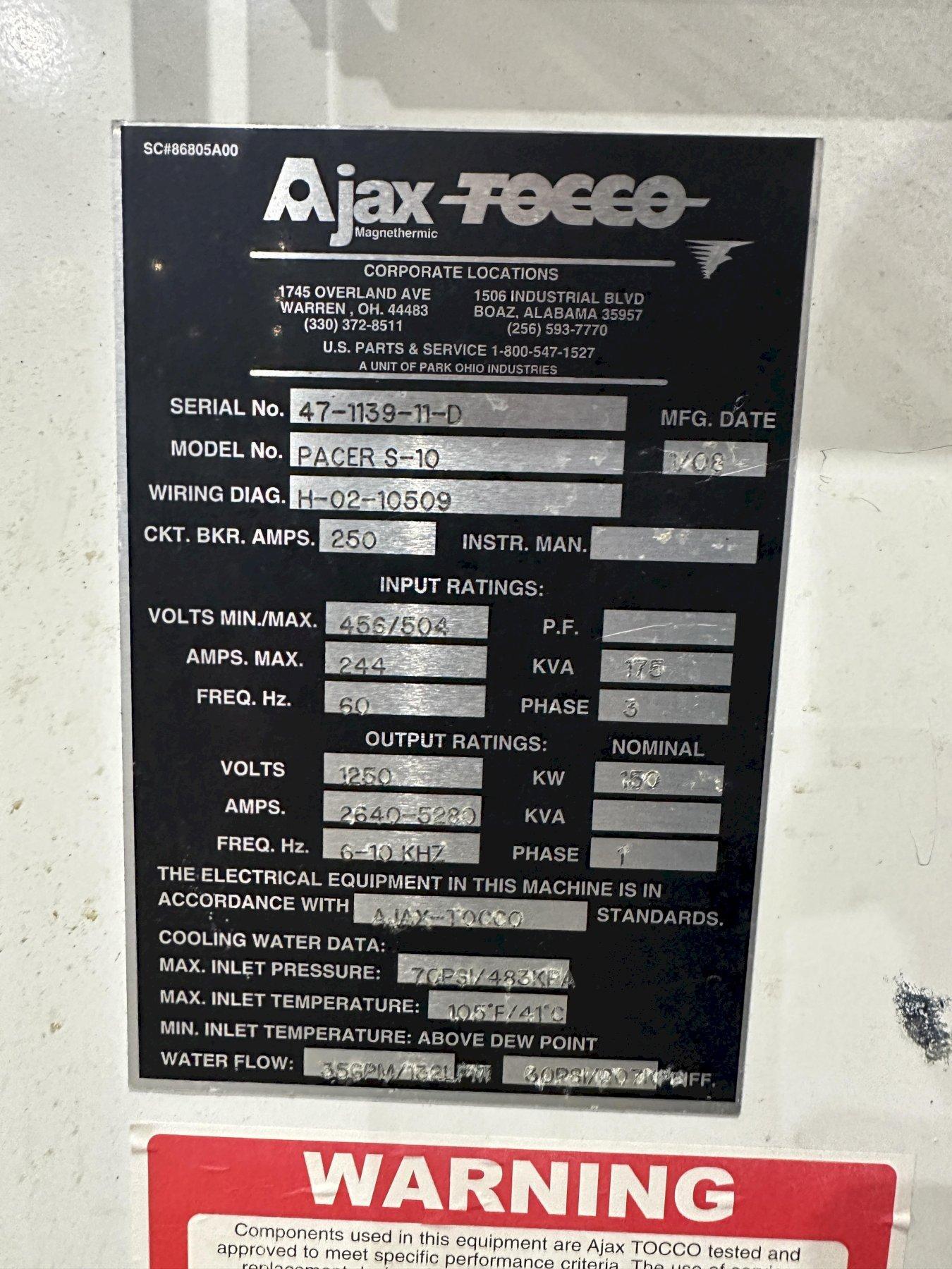 Similar Listings to - 150 KVA AJAX-TOCCO MODEL PACER-S10 ANNEALING INDUCTION MACHINE: STOCK #22587
