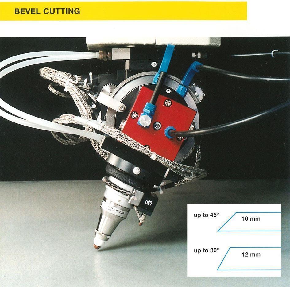 Up to 20° bevel angle laser quality cuts are possible, with larger bevel angles serrations and burrs must be expected