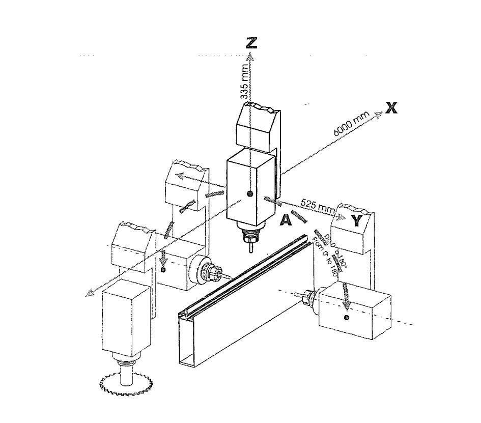 max workpiece size machinable on 3 faces, gripped in standard vice with tool length 35 mm + toolholder length 105 mm >> 195 x 170 x 6300 mm
