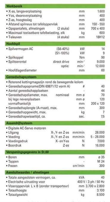• Power on the spindle 14 kW