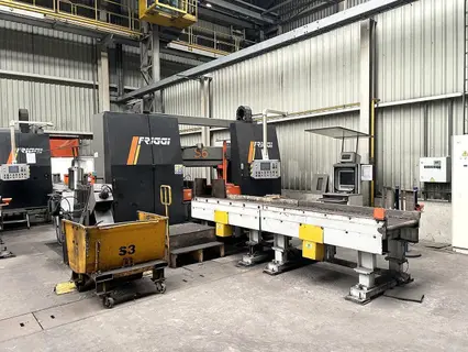 - 9 meter in-feed rollerconveyor (inside) with 2 hydraulic clamps for aligning workpiece
