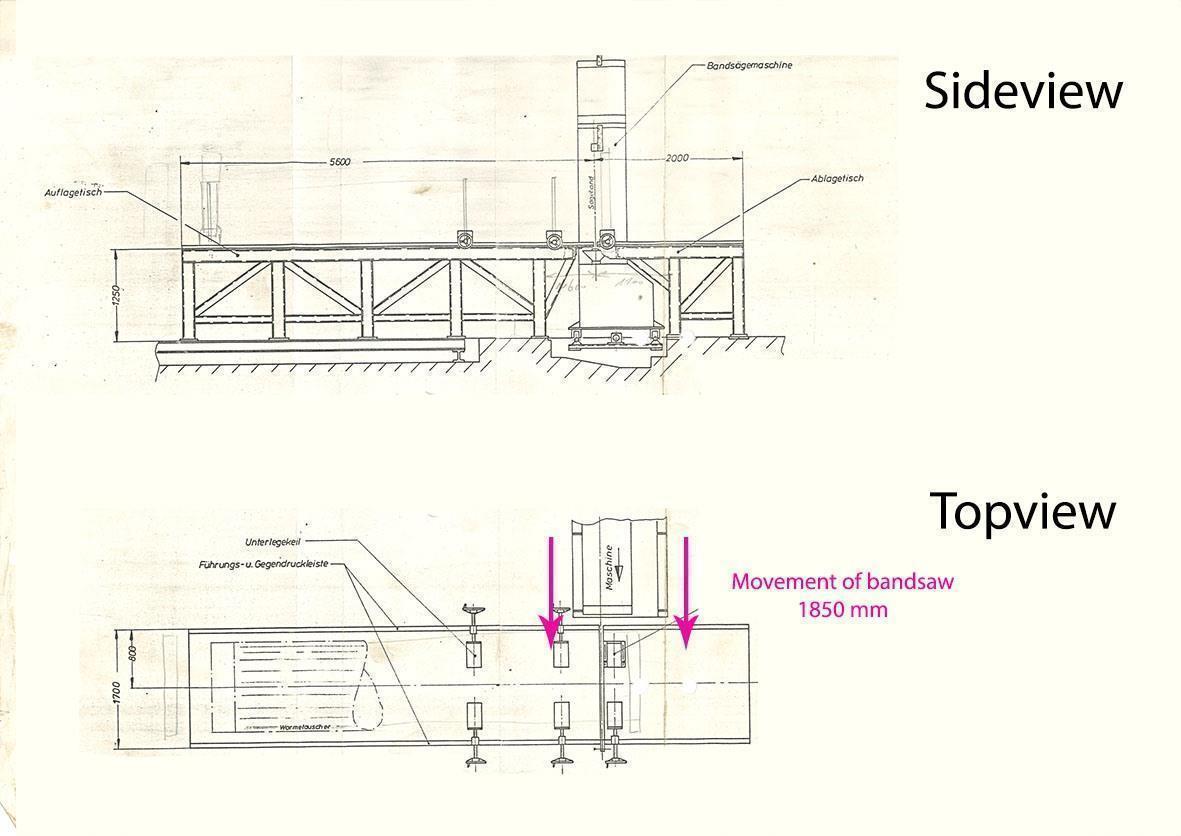 horizontal movement (stroke) of bandsaw: 1850 mm